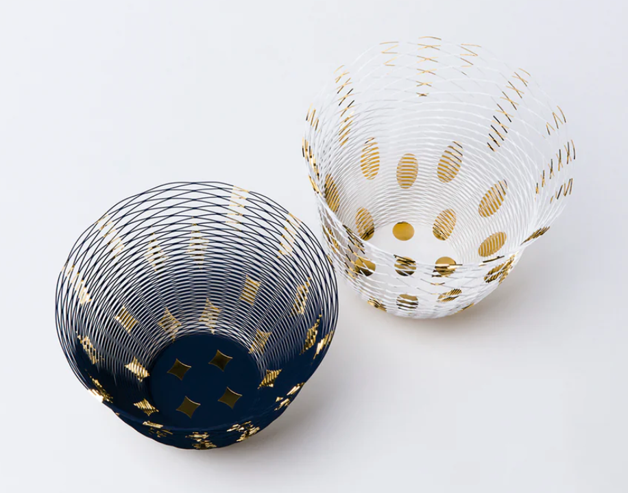 A family run print company in Tachikawa, in the western part Tokyo, Fukunaga Print Co. set off in a new direction in 2006. Their Kami no Kosakujo (Paper Workshop) project launched in this year, sought to pair their skills with imagination from Japan’s community of great designers. The Air Vase range is a successful outcome of this project, with the print company’s ability to work with paper matched to the structural imagination of the Torafu Architect’s studio. The gold stamping patterned airvase catches light to create an impressive, sparkling display. This is a paper bowl that enfolds air. You can freely change its shape to use it as a tray for small objects, decorate a vase, gift wrap a bottle of wine or present it as a piece of modern art. The thin and lightweight paper gives strength and resistance to the bowl. By expanding and compacting it in diverse ways, you can enjoy the ever-changing patterns.