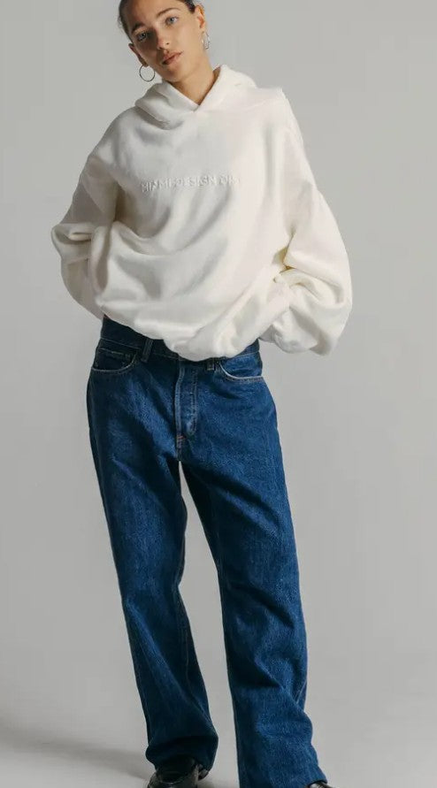 This hoodie is made in the U.S.A. from 100% combed cotton. Featuring ribbed cuffs, a ribbed hem, and hidden side pockets, this custom fleece was designed to have an oversized and cozy fit. It was developed using garment dye, enzyme, and silicon wash for the softest feel possible.