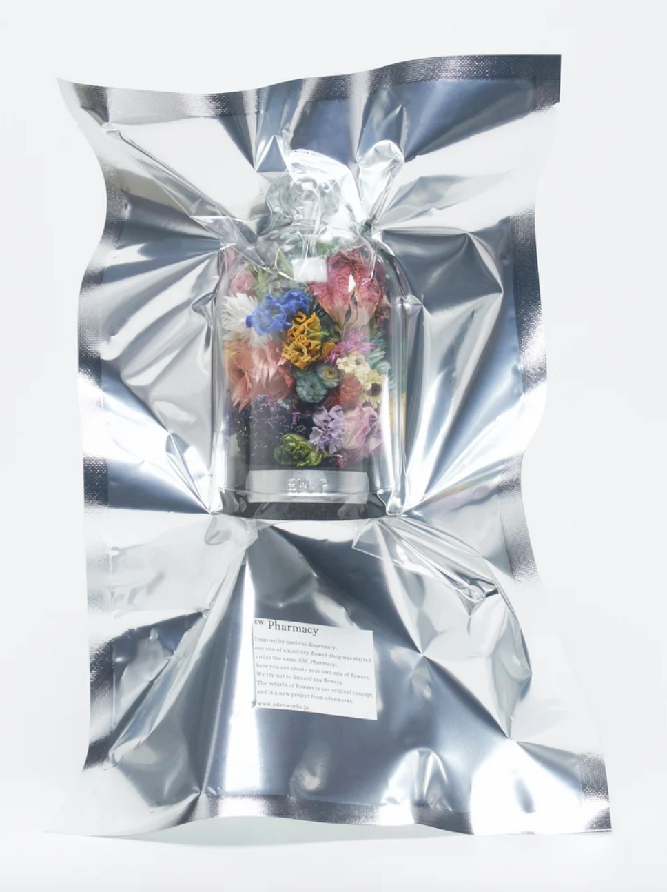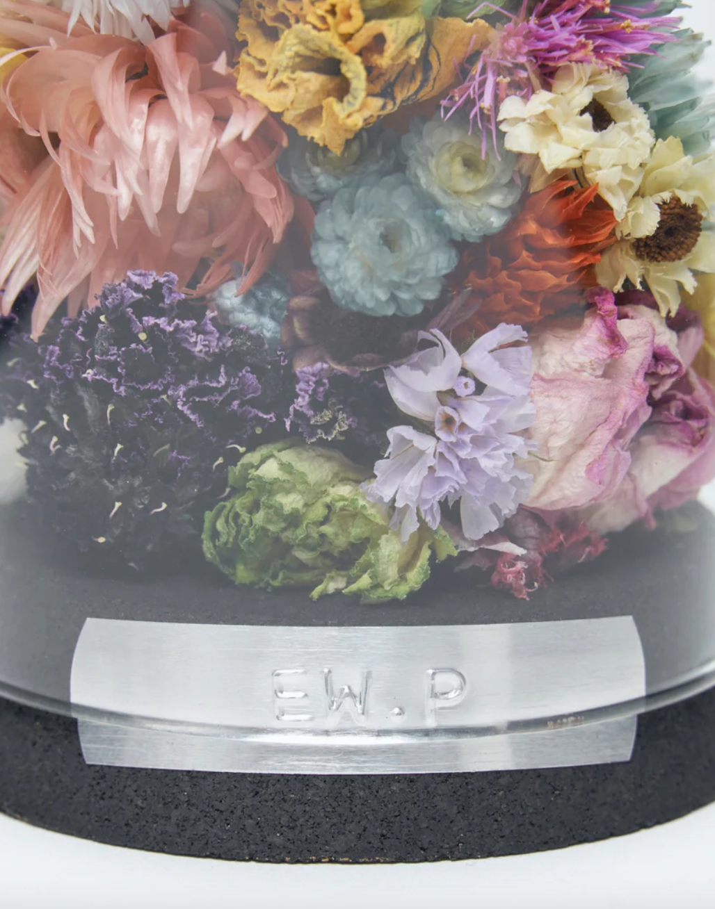 This gorgeous dome-shaped arrangement is packed in a way that allows you to enjoy the various expressions of flowers in 360 degrees. The bottom is covered with a black cork, which keeps the flowers intact and free from moisture and dust, allowing this product to be enjoyed for a long time.
